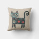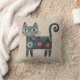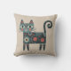 Whimsical Folk Art Retro Boho Cat Beige Throw Pillow