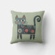 Whimsical Folk Art Retro Boho Cat Sage Throw Pillow