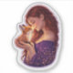 This whimsical fox die-cut sticker features a gentle nose-to-nose moment between a glowing fox and a serene figure, surrounded by soft sparkles and warm, magical light.