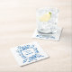 Whimsical French Blue Botanical Crest Wedding Square Paper Coaster