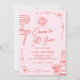 Whimsical French Hand Drawn Pink Red 30th Birthday Invitation