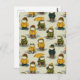 This charming seamless pattern features an array of adorable cartoon frogs, each dressed in vibrant yellow raincoats, cozy hats, and boots, navigating a puddle-filled landscape. With one frog even holding a tiny umbrella, this playful illustration captures the cheerful spirit of a rainy day.