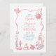 Whimsical Funky Hand Drawn Pink Blue Wedding Invitation