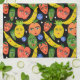Whimsical Funny Fruit Salad Pattern Black Kitchen Towel