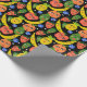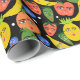 Whimsical Funny Fruit Salad Pattern Black Wrapping Paper