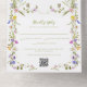 The RSVP card is conveniently attached to the invitation and features a unique QR code that makes it easy for guests to RSVP quickly and easily. This invitation is perfect for couples looking to add a touch of charm and elegance to their special day. The intricate floral frame adds a touch of whimsy and highlights the joy of blooming love. The colorful wildflowers provide a beautiful pop of color and add a playful element to the design. The handwritten script font adds a personal touch to the invitation, making it feel warm and intimate.