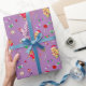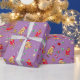 Whimsical Gingerbread Men and Christmas Candy gift wrap, in red, purple, green and other holiday colors,