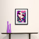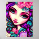 This is a fun poster featuring a whimsical illustration of a girl in purple, pink and turquoise.