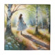 Whimsical Girl Dancing Through Birch Forest Ceramic Tile