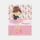 Whimsical Girly Floral Pink Ballerina Personalized Fleece Blanket