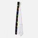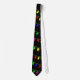 This whimsical Christmas design necktie has a string of colorful glowing lights going around. The pattern is repeated all over the tie, on a black background.