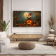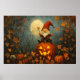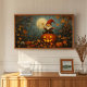 This whimsical fall art features a gnome sitting on a glowing jack-o'-lantern under the full moon. Surrounded by golden autumn leaves, this charming artwork brings a cozy, seasonal vibe to any room. Perfect for fall decor lovers, it adds a touch of enchantment to your home or office. Available in various products, it makes a great gift for Halloween or Thanksgiving!