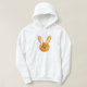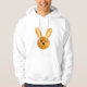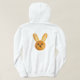 A charming and simple piece of food art featuring the face of a delightful rabbit. This Easter bunny head is skillfully crafted from baked goods, with a golden-brown, perfectly round roll forming the face and two elongated rolls creating the signature long ears.