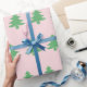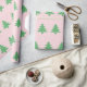 Whimsical Green Christmas Trees on Pink Christmas Wrapping Paper