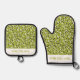 Whimsical Green Polka Dot Doodles Pattern Oven Mitt & Pot Holder Set