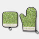 Whimsical Green Polka Dot Doodles Pattern Oven Mitt & Pot Holder Set