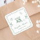 Whimsical Green Wavy Frame Wedding Square Sticker