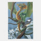 Whimsical Green Winter Fantasy Dragon Chickadees Kitchen Towel