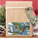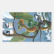Whimsical Green Winter Fantasy Dragon Chickadees Rectangular Sticker