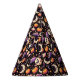 A magical Halloween night unfolds in this whimsical pattern, filled with glowing crescent moons, playful bats, and radiant stars set against a deep black sky. Bright orange pumpkins, swirling clouds in shades of purple and gray, and delicate spiderwebs weave together a lively yet enchanting scene. The design blends spooky charm with a dreamy storybook feel, perfect for evoking festive autumn nights and imaginative seasonal whimsy. AI generated artwork.