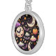 Whimsical Halloween Night Sky Pattern Silver Plated Necklace