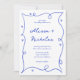 Whimsical Hand Drawn Blue Monogram Wedding Invitation