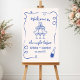 Welcome guests in style with this Whimsical Hand Drawn Blue Rehearsal Dinner Sign. Featuring charming, hand-drawn details and a soft blue palette, this sign sets a relaxed and joyful tone for your pre-wedding celebration. Perfect for coastal, garden, or casually elegant dinners, it adds a personal and artistic touch to your event décor. Customize with names, date, and location to create a memorable first impression for family and friends.