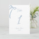 Celebrate your wedding in style with our whimsical hand drawn bow dusty blue wedding table number. This design features our original hand drawn bow illustration and hand written typography, a unique addition to your modern vintage inspired wedding or special events. All details in the invitation are editable including text, illustration, background and text color.
