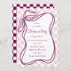 Celebrate the holiday season in style by inviting your loved ones to a Christmas Party with our charming bow-framed and retro chequered background invitations. The invitation showcases your event details in a beautifully handwritten script, adorned with a festive bow and ribbon in deep wine, against a backdrop of play pink retro chequered pattern. Spread the holiday cheer and make your event stand out with our whimsical invitations.
