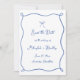 Whimsical Hand Drawn Bow French Blue Wedding Save the Date with a wavy ribbon frame and handwriting style font. Add extra details to the reverse.