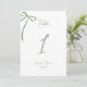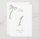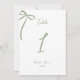 Celebrate your wedding in style with our whimsical hand drawn bow sage green wedding table number. This design features our original hand drawn bow illustration and hand written typography, a unique addition to your modern vintage inspired wedding or special events. All details in the invitation are editable including text, illustration, background and text color.