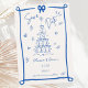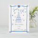 This trendy hand drawn style illustrated save the date invitation features a scribble bow and champagne tower. The whimsical and quirky design includes handwritten font and celebration doodles. Cobalt blue and white for classic yet modern wedding stationary.