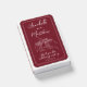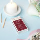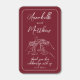 A simple white line frame elegantly surrounds the rich burgundy red background, giving it a classic yet modern feel. The wedding date is displayed at the bottom in white, making this a meaningful keepsake for guests.
