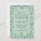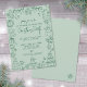 Invite guests to your holiday party with this cute and festive Christmas invitation. The design features a sage green background with emerald green fonts and hand-drawn doodle line art illustrations all around the edges, including Santa, snowmen, stockings, greenery, ornaments, and other classic holiday icons, mixed with festive cocktails and even a champagne tower for a lively party vibe. The center keeps things simple with a handwritten script paired with clean fonts, giving it the look of a sweet handwritten note.
