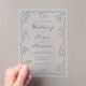 This whimsical coastal dusty blue wedding acrylic invitation is elegant with a relaxed seaside aesthetic, featuring a wavy scallop frame, hand drawn beach doodles, and casual handwriting script.