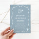 These whimsical, dusty blue and white Christian Baptism invitations feature modern, elegant script and handwritten style text. A dove of peace also appears inside a trendy, scribbled frame. All colors can be changed, including the illustration and script.
