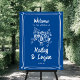 This modern wedding welcome sign features a hand-drawn floral illustration and the look of hand-lettered typography in the perfect shade of blue. The overall aesthetic is handmade and fun, yet still romantic! See the collection for more items.
