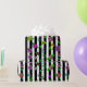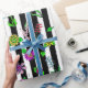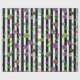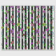 Pretty hand drawn whimsical flowers, red, purple, pink, sage green, teal and yellow floral design with black and white stripes birthday or wedding gift wrap.