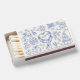 Personalized Hand Drawn Quirky Whimsical Wedding Matchboxes. These adorable matchboxes feature a playful hand-drawn design with blue fonts and artwork, creating a charming favor for weddings, engagement parties, or bridal showers. At the center is a vintage heart-shaped cake illustration in blue with the couple’s initials written on the cake, forming a sweet and nostalgic focal point.