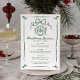 Add a festive touch to your holiday table with this hand-drawn Christmas dinner menu featuring green illustrations and lettering on a white background. A ribbon bow accents the top of the design, with a classic dinner plate and silverware illustration below. “Christmas Dinner” is displayed in an elegant handwritten script, followed by space for your personalized menu and date. The entire layout is bordered by a flowing green ribbon frame, creating a timeless and coordinated piece that complements the matching invitations in this collection.