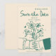 Whimsical Hand Drawn Green Floral Wedding Save the Date