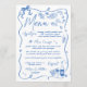 Present your wedding feast with our charming wedding menu card. Featuring whimsical hand-drawn illustrations with playful wavy and squiggly lines, this menu card adds a touch of artistic flair to your dining experience. The serene blue palette enhances the unique design, making it a delightful addition to your table settings. Perfect for couples who appreciate creativity and fun, this menu card beautifully complements your wedding decor while informing guests of the delicious dishes to come. Elevate your celebration with this enchanting and stylish menu card! Explore our coordinating items available in-store for a cohesive and stylish look. (c) Ever After Wedding