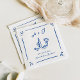 Whimsical Hand Drawn Navy Food & Wine Wedding Napkins