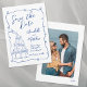 Whimsical Hand Drawn Photo Blue Wedding Save The Date