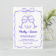 Elevate your wedding style with this Whimsical Hand-Drawn Royal Blue Wedding Invitation! Featuring a charming hand-drawn ribbon and bow at the top, two playful wine glass illustrations, and elegant royal blue handwritten script on a crisp white background, this design blends quirky artistry with timeless sophistication. Customize names, dates, and venue details. Available as printed cards (perfect for mailing) or a digital download. Ideal for couples craving a bold, non-traditional invitation that balances whimsy and elegance—perfect for modern, italian, or vintage-inspired weddings!
