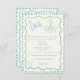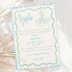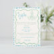 This trendy hand drawn style illustrated wedding details enclosure card features a scribble bow and chandelier. The whimsical and quirky design includes handwritten font and celebration doodles. Blue and green colors for classic yet modern wedding stationary.