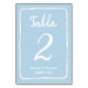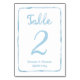 Enchanting Custom Table Number Cards! Each card features a simple whimsical hand-drawn light blue frame on a pristine white background, adorned with an original handwritten 'table' and personalized names and date. What makes these cards truly magical is their reversible design: light blue on one side and white on the other, allowing you to choose the perfect color to complement your table decorations.