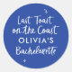 Whimsical modern fun hand drawn toast toast on the coast royal blue bachelorette weekend favor sticker.