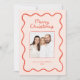 Whimsical Hand Drawn Wavy Border Christmas Photo Holiday Card