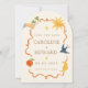 Celebrate your special day with this whimsical boho wedding invitation, featuring hand-painted watercolor illustrations of the sun, moon, stars, and delicate floral details. Inspired by celestial and folk art motifs, this unique design brings a touch of magic and romance to your wedding celebration. Perfect for couples looking for a bohemian, rustic, or nature-inspired theme.
